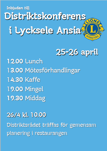 Inbjudan till Distriktsmöte 25-26 april